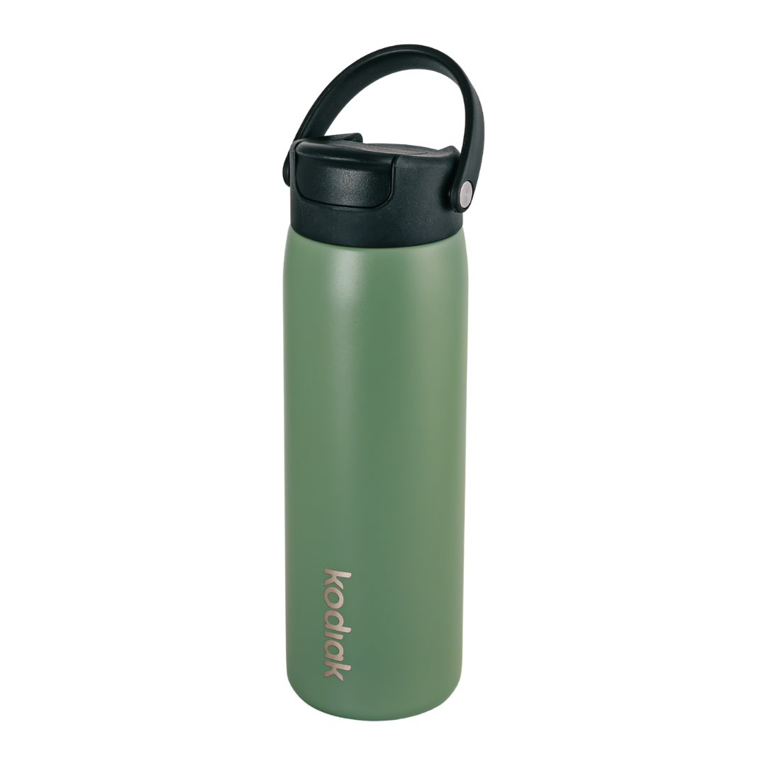 Hydration that moves with you. The Kodiak Impact Bottle combines style and performance with a generous 710ml capacity, double-wall insulation, and a leakproof sip-straw lid that keeps your drink at the perfect temperature wherever the day takes you. Its ergonomic carry handle and comfortable grip make it effortless to take on the go, while the UV-resistant stainless steel construction stands up to an active lifestyle. Available in seven bold colours, dishwasher safe, and backed by a 5-year warranty, it delivers durability, versatility, and confidence without compromise.